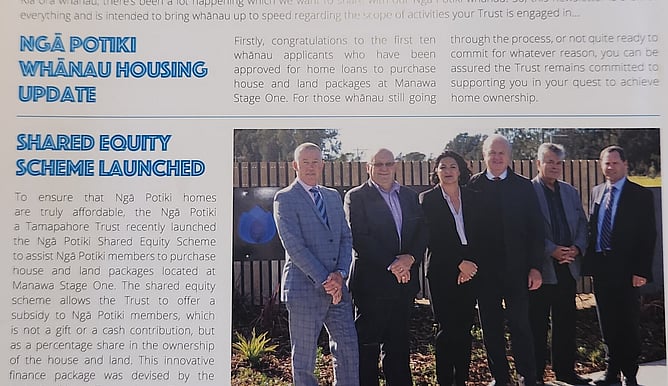 Nga Potiki a Tamapahore Treaty Settlement Trust in partnership with Westpac Bank launched the first Iwi shared equity housing scheme in 2018 with 10 Nga Potiki whanau building their first homes in Manawa subdivision, Papamoa.